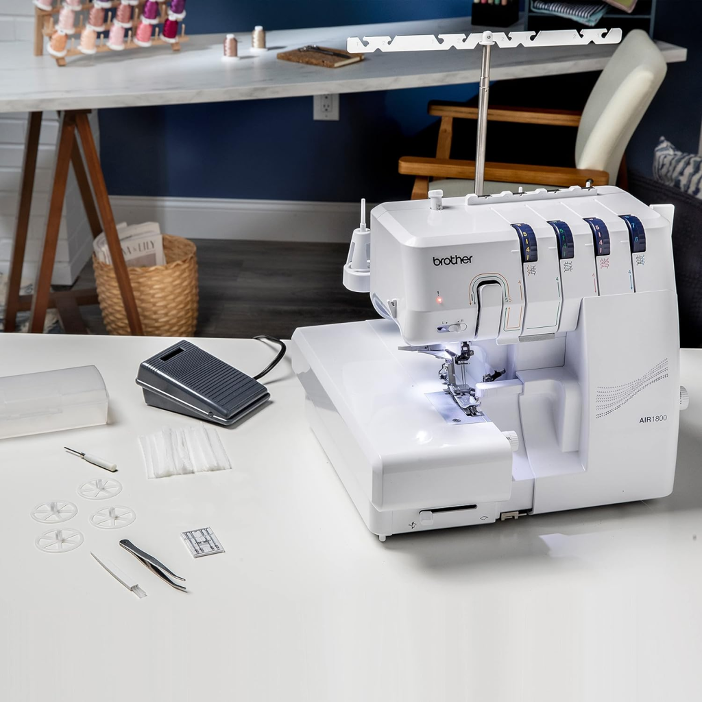- The Brother Air1800 Air Serger’s standout feature is its jet-air threading system, which makes threading loopers incredibly fast and simple, removing a major hurdle for new users.