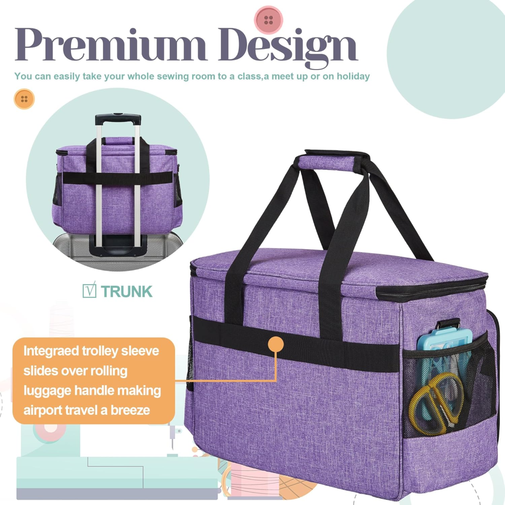 It’s a practical sewing machine transport case for keeping things tidy and protected from dust when not in use. It’s a reliable sewing machine storage bag.